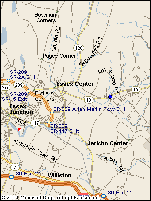 From the West (Essex Junction), take Rt 15 for 6 miles to Jericho Corner.